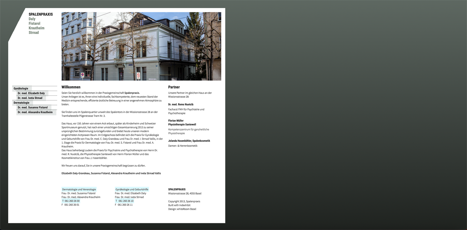 Die Spalenpraxis war mein erstes Projekt, bei dem ich von Anfang bis zum Ende mitgewirkt habe. Das Schwierigste dabei war eine gute Website zu gestalten, welche aber nicht zu kalt oder emotionslos erscheint. Eine Herausforderung war, dass es eine Website für zwei Praxen werden sollte, die unter einer Marke erscheinen.